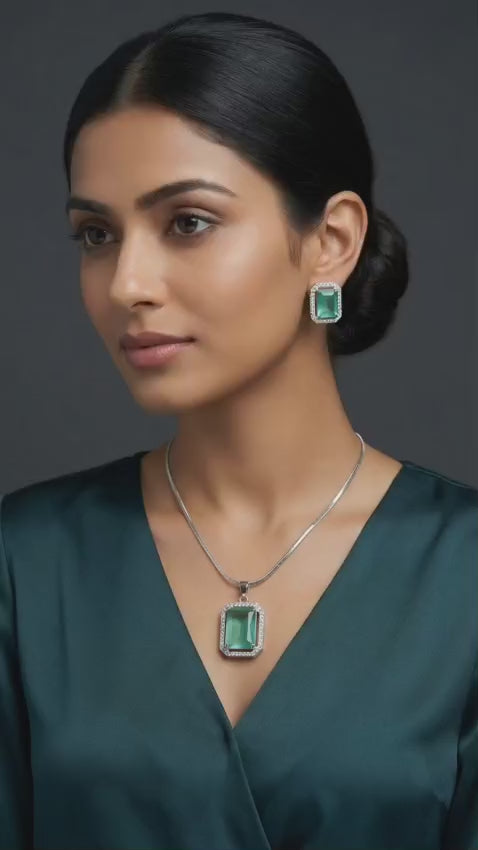 Premium quality american diamond set with superb Green gemstones crafted for festive wedding and your upcoming special occasions.